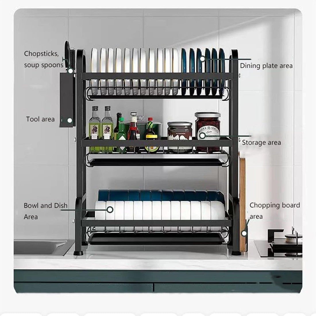 3 Tier Dish Racks for Kitchen Counter, Dish Drainer Rack Stainless Steel