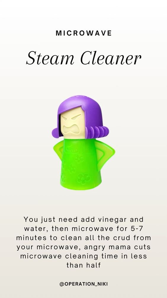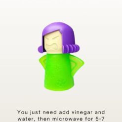 Uses vinegar + water steam to loosen stubborn microwave stains