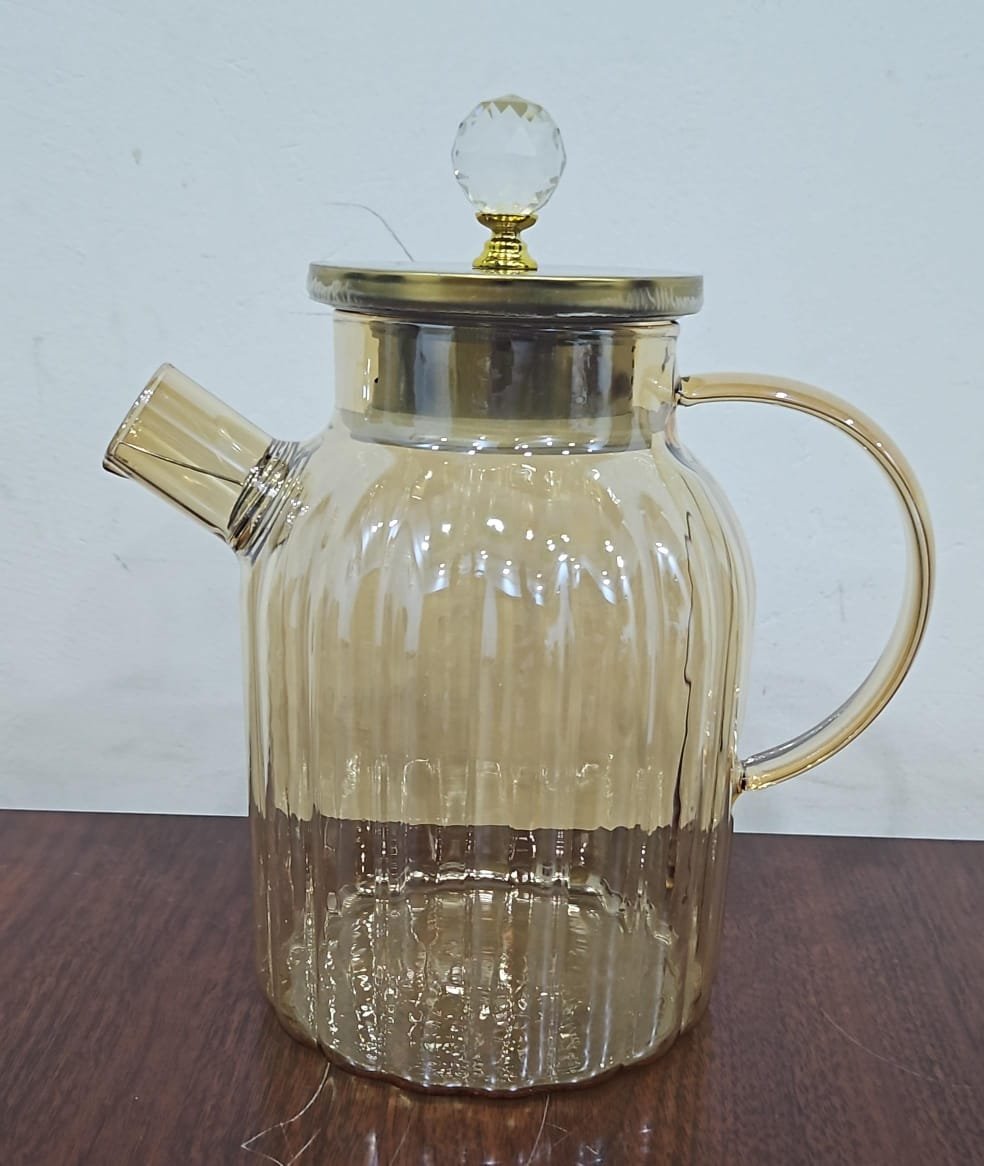 Chapin 1800 ml golden glass pitcher tea pot with a spring sieve