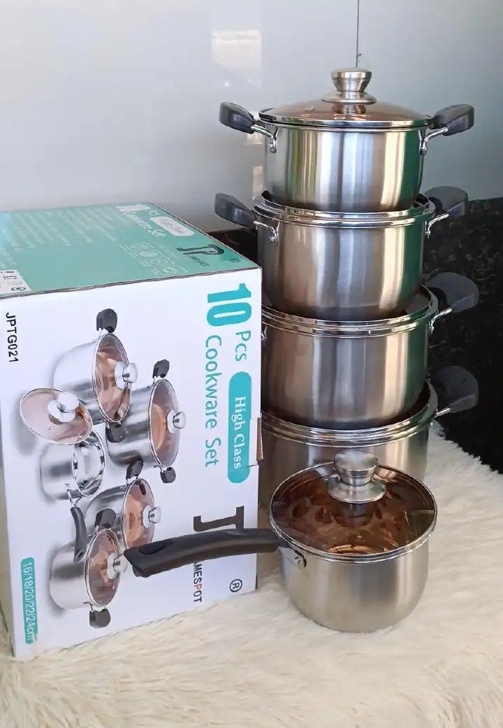 JP Jamesport Heavy duty 10 PCS Stainless Steel Cookware Set Cooking Pots/sufuria